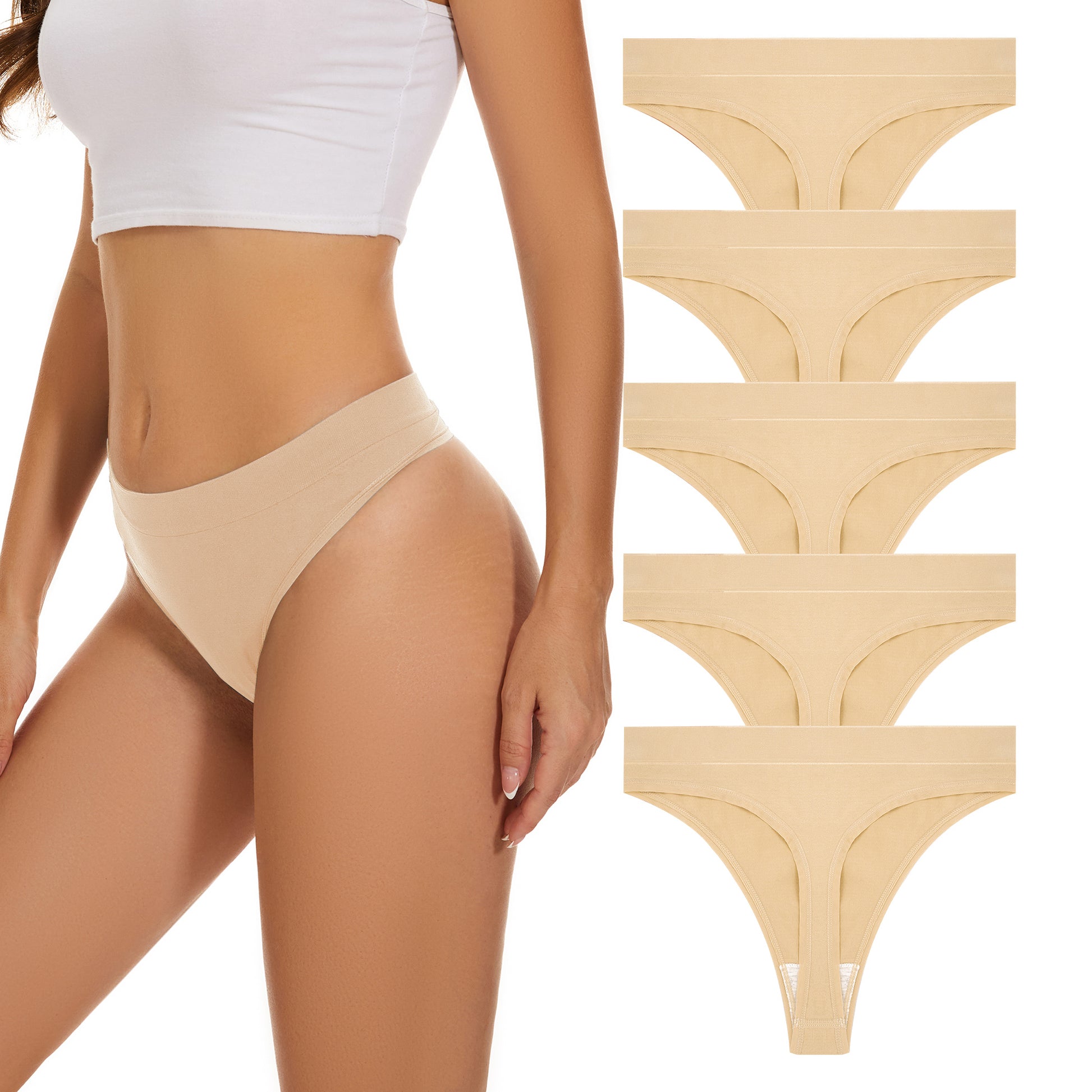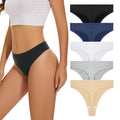 Voenxe High Waisted Seamless Women Underwear Thongs, No Show Ladies Breathable Undies for Women, 5 in 1 Pack