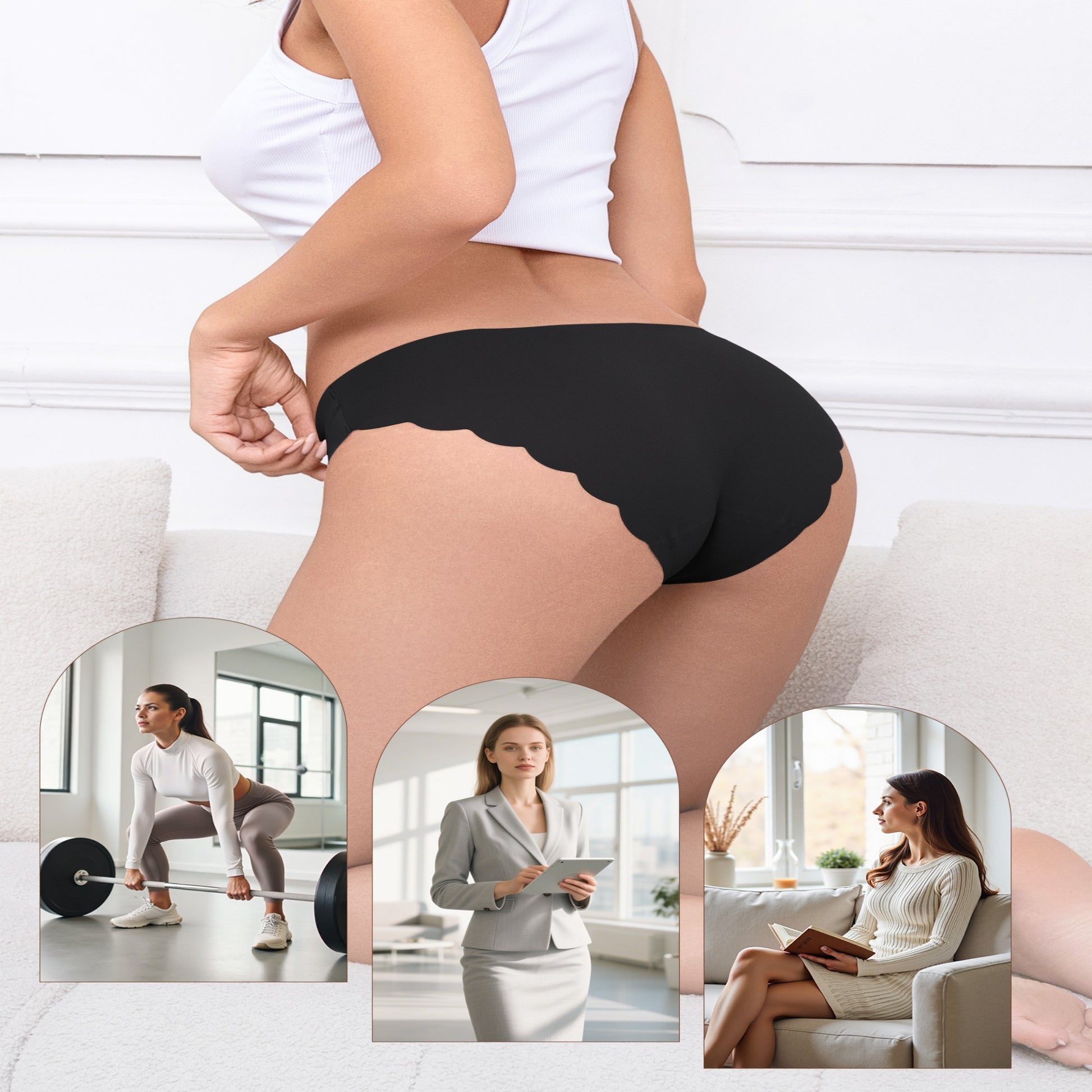 Seamless Scalloped Edges –Soft edges hug skin without marking or curling, invisible under clothing.