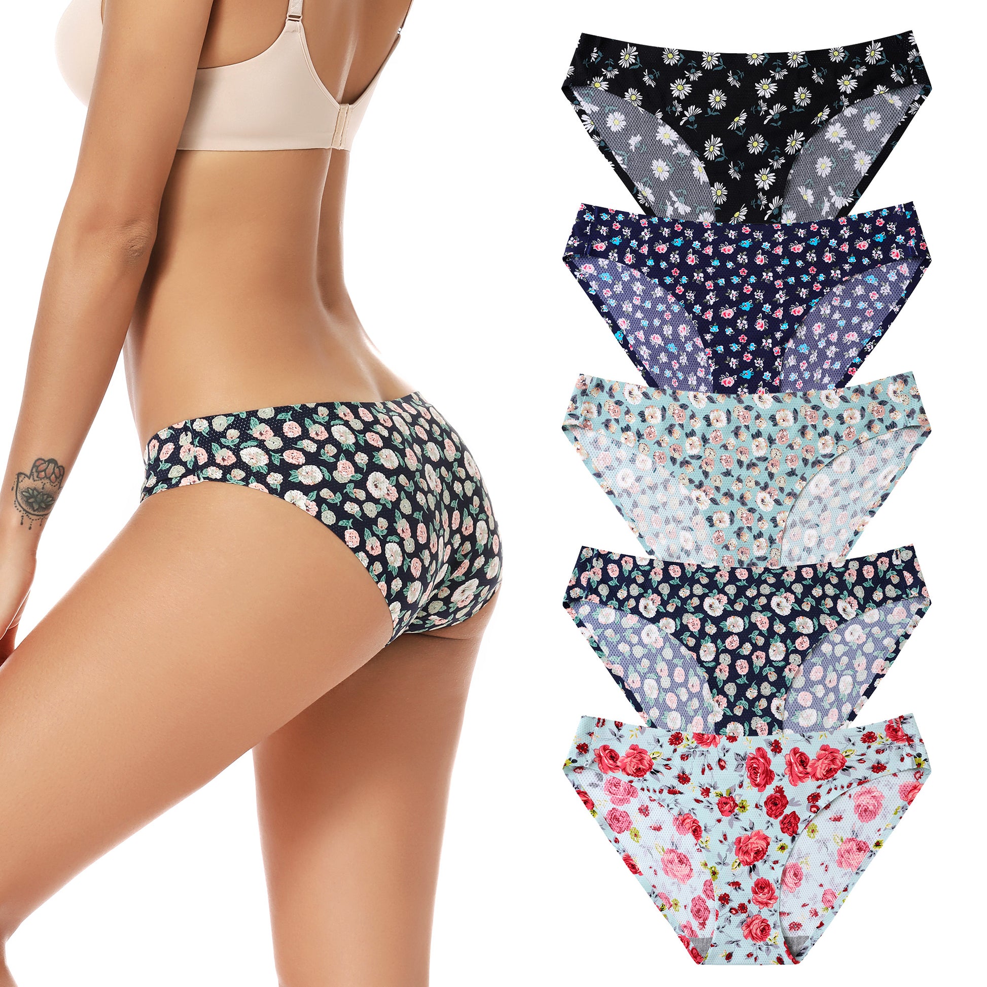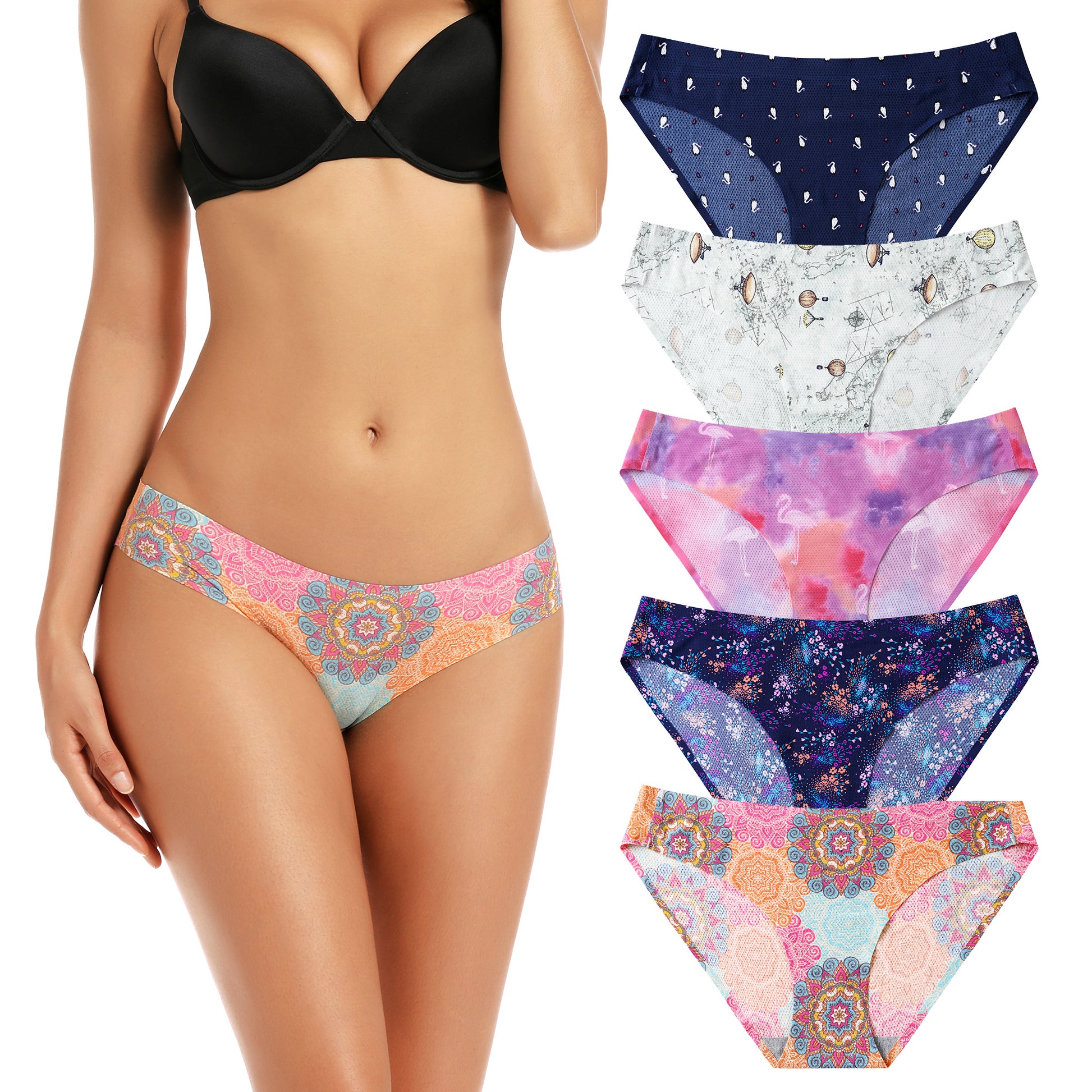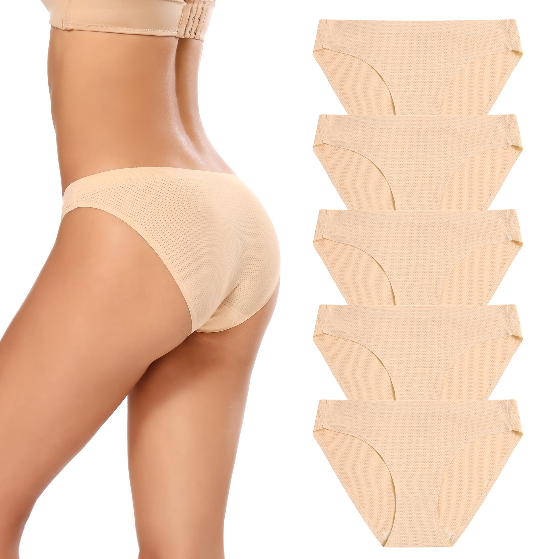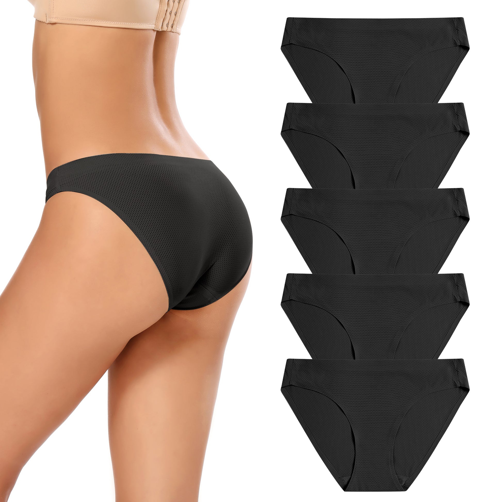 Voenxe Seamless Women Bikini Underwear, Breathable No Show Panties for Women, 5 in 1 Pack