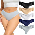 voenxe Seamless Women Underwear Thongs,High Waisted Ladies No Show Panties Line,5 in 1 Pack