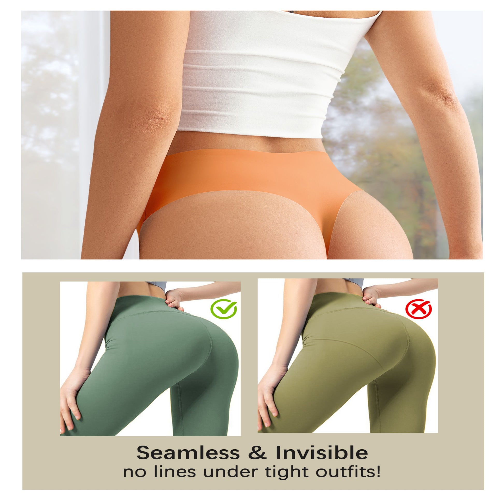 - Invisible Seamless Comfort: These no-show underwear feel like a second skin,eliminating visible panty lines for a flawless,smooth look under any outfit. Whether paired with jeans,leggings,or a fitted dress,they stay completely invisible. Crafted from ultra-soft,irritation-free fabric,they offer all-day comfort and effortless movement,keeping you confident and carefree
