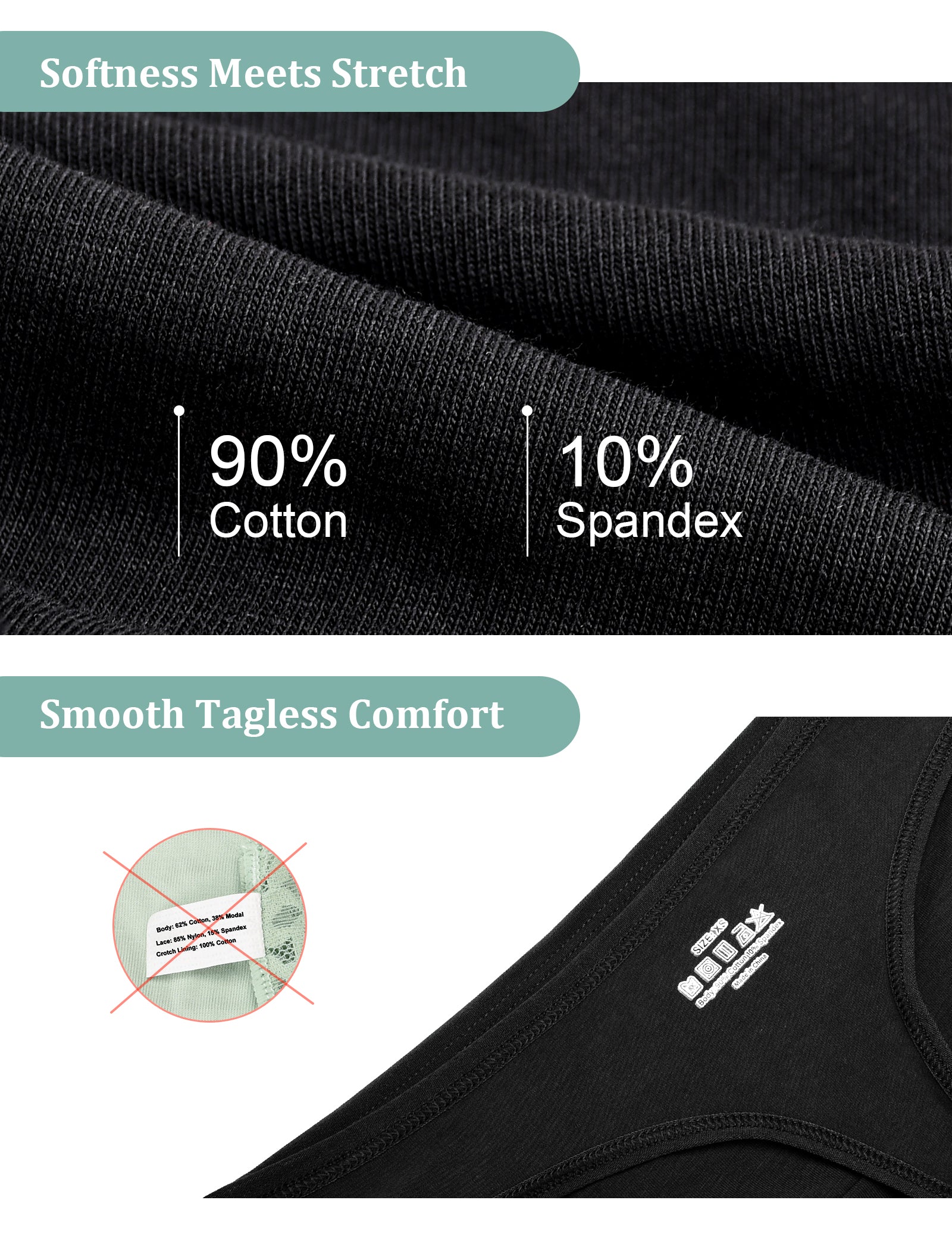 棉柔舒适——90%棉和10%氨纶混纺面料,带来如云朵般柔软舒适的穿着体验,全天保持清爽。