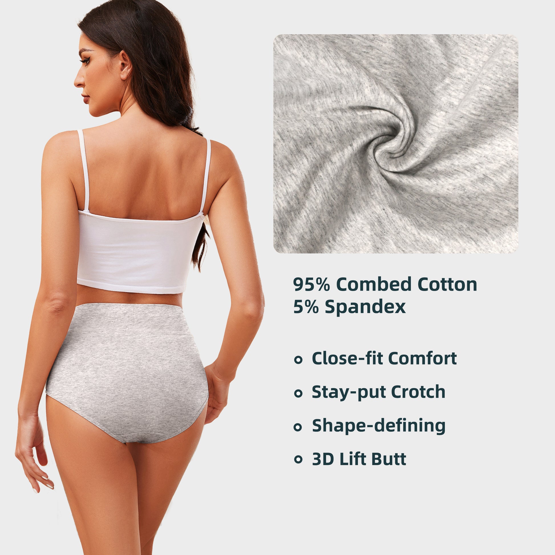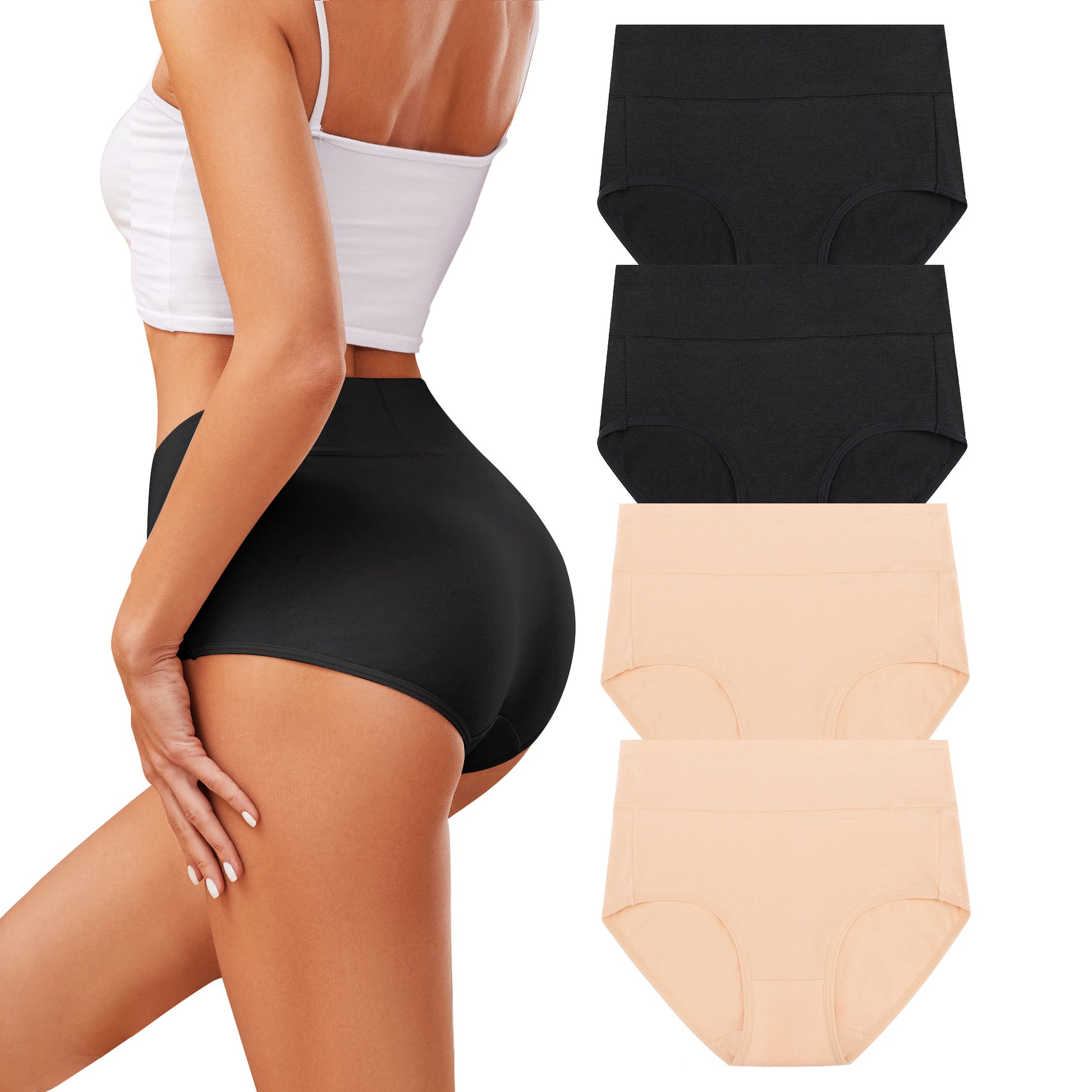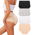 Voenxe Women High Waisted Cotton Underwear, Comfortable Stretchy Full Coverage, 4 in 1 Pack